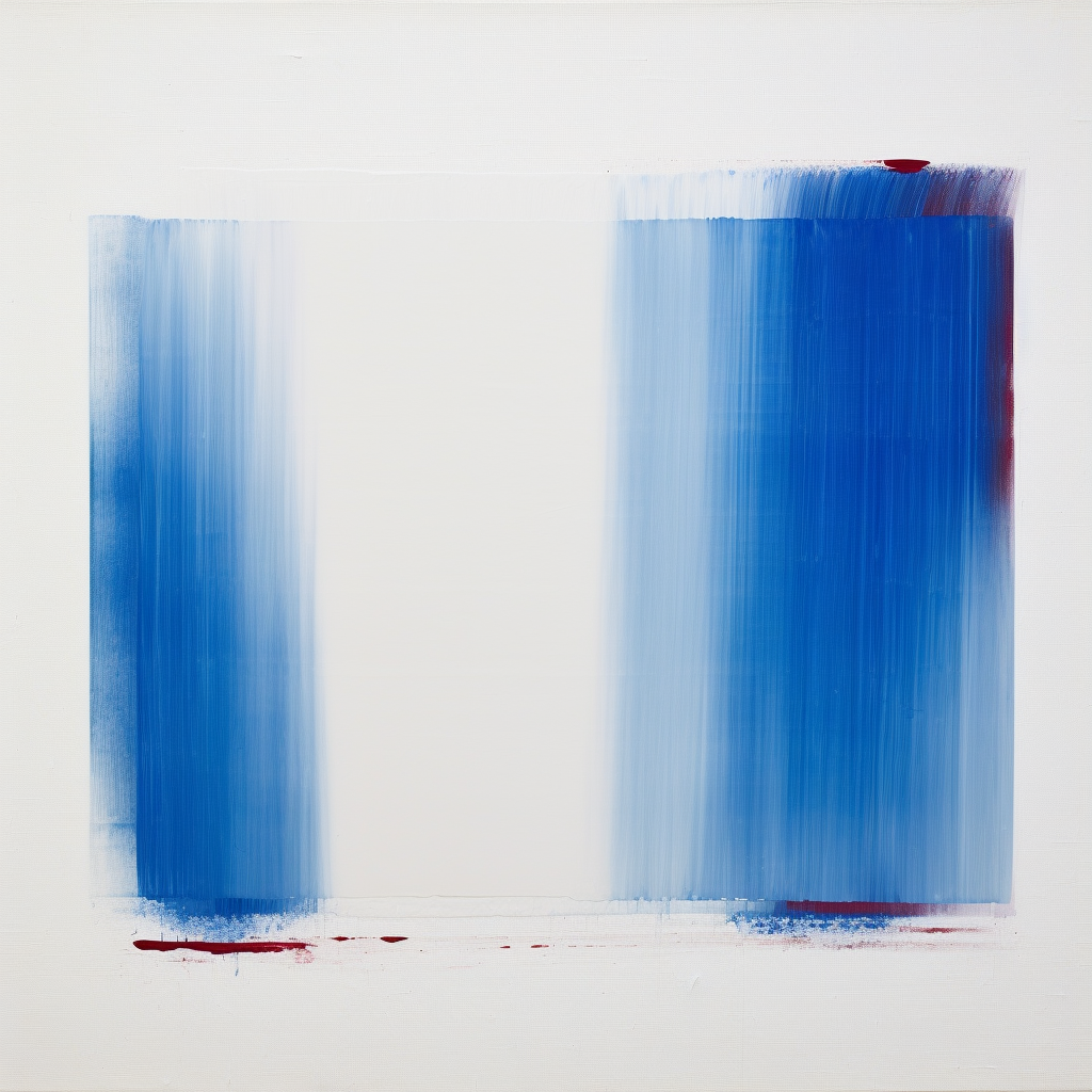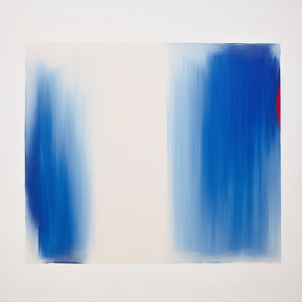 With small iteration on the AI artwork we managed to extract two lightly brushed bodies of oil on canvas referencing Lee Ufan.